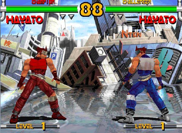 Another very charismatic character was Hayato Kanzaki, straightly taken from Plasma Sword, a sci-fi beat’s up set up on a distant galaxy. The product was the first Capcom’s attempt to enter the world of 3D combat games. Unlike another saga, like Street Fighter, Plasma Sword is based on weapons instead of bare hands and sees this bounty hunter crossing the galaxy in order to defeat the evil Bilstein. Plasma Sword is one of the games I sometimes still play because it reminds me of an era in which, for a very brief moment, the words console war meant nothing else that better games for users. The natural competition among software and hardware houses was there for us, and not for them. This competition sometimes evolved, for example, in nicely drawn game backgrounds, instead of useless mutual insults on social media. In the following pictures, you can see what I mean: a disguised PlayStation logo makes its appearance in the beautiful backgrounds of the Dreamcast version of the game.